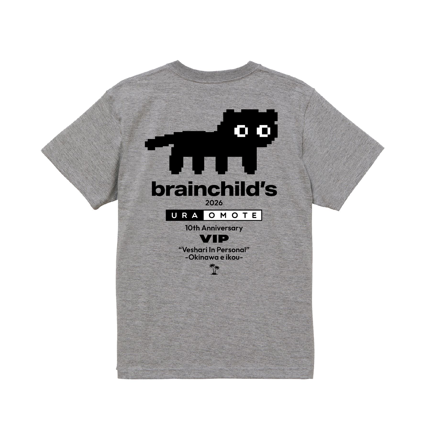 2026年03月06日 《 brainchild’s 2026 Ura Omote 10th Anniversary VIP “Veshari In Personal” ―沖縄へ行こう― 》のツアーグッズ「VIP 2026 Ura Omote 10th にゃんTee」、ご好評につきニューカラーの発売が決定しました!!